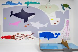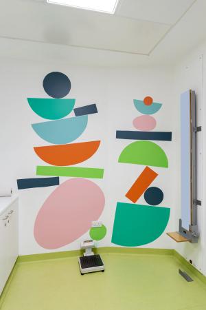 At Sheffield Children's Hospital's Outpatients Department, children can compare themselves to creatures great and small and wonder at shapes that balance and wobble; all whilst they undergo assessment in this bright, colourful department.