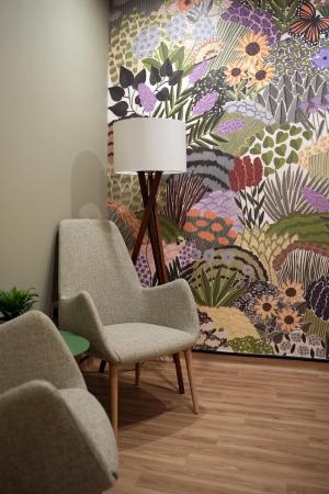 We invited artist and illustrator Sara Boccaccini Meadows to design tranquil watercolours which were worked up into large-scale pieces and are unique to the scheme.